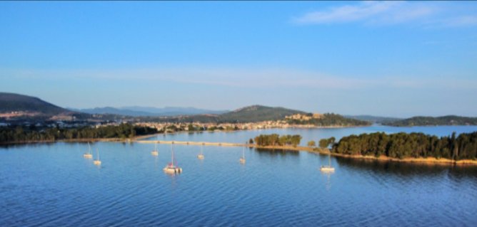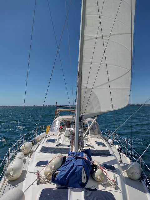 Första seglingen gick från Preveza till en härlig ankarplats vid Vonitsa, ungefär 8,5 NM med behaglig slör. Vi toppade 7,5 knop!