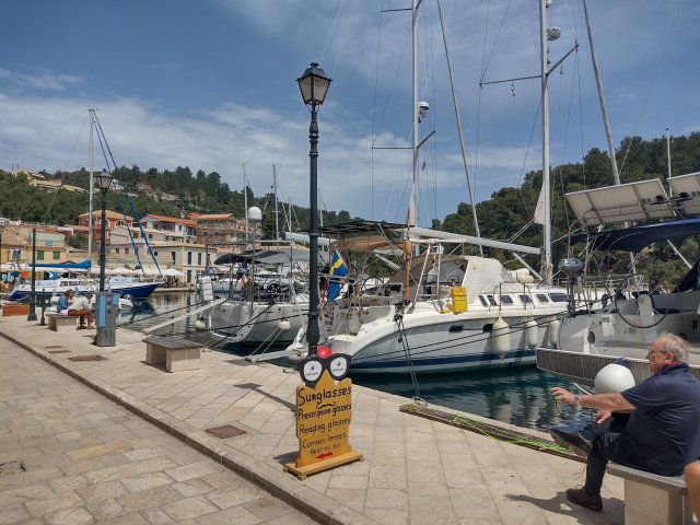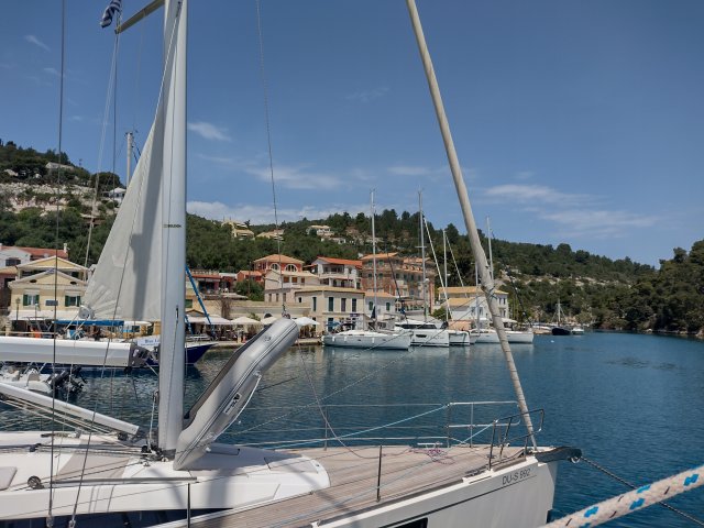 Igår gick vi så den dryga distansminuten upp till Gaios, en helt underbar liten stad och hamn som enligt uppgift är helt proppfull och kaotisk under högsäsong, men så här i maj lite lugnare och vi fick direkt en bra plats på stadskajen. 24 gr varmt, blå himmel, svaga vindar och som vanligt trevliga båtgrannar som alla hjälper varandra.