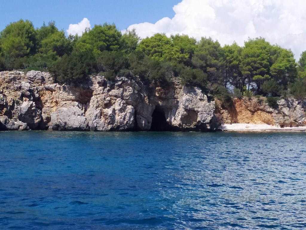Vi ligger i en liten vik på Korfus östkust, så liten att den inte har något namn på sjökortet. Förutom två båtar som ligger vid en privat brygga är Juno den enda båten i viken, här är det bad som gäller. Under dagen har en mängd daycruisers lagt till för någon timme, besättningen har hoppat i, simmat och lekt i vattnet för att sedan försvinna runt udden.