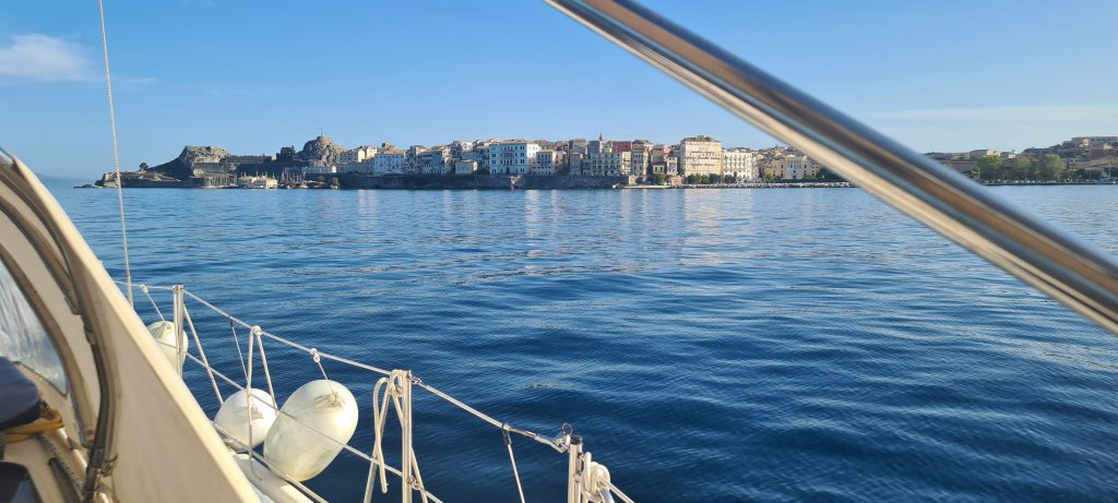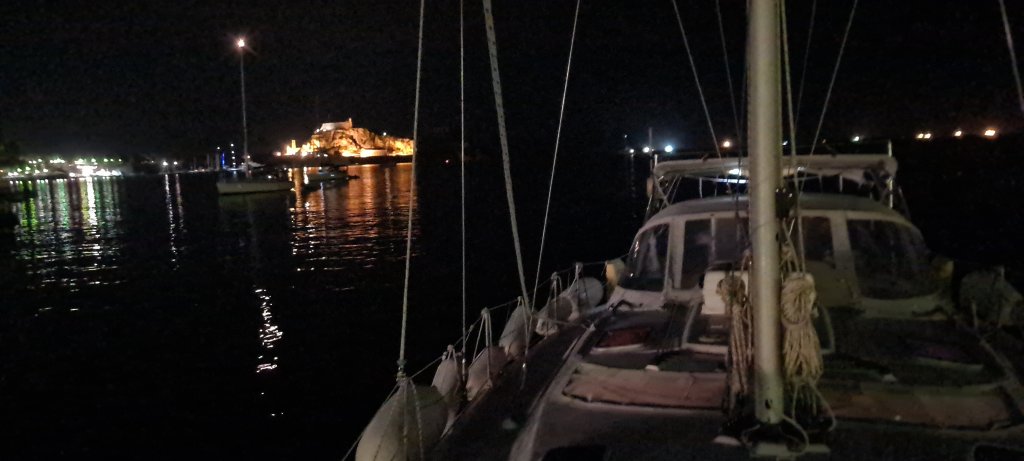 Från Ormos Garitsas flyttade jag mig runt udden med ”The Old Fortress” och la mig på nordsidan av Corfu Town i Ormos Potamou för att få bättre skydd i den förväntade hårda sydostliga vinden (och lite närmare till Lidl…).