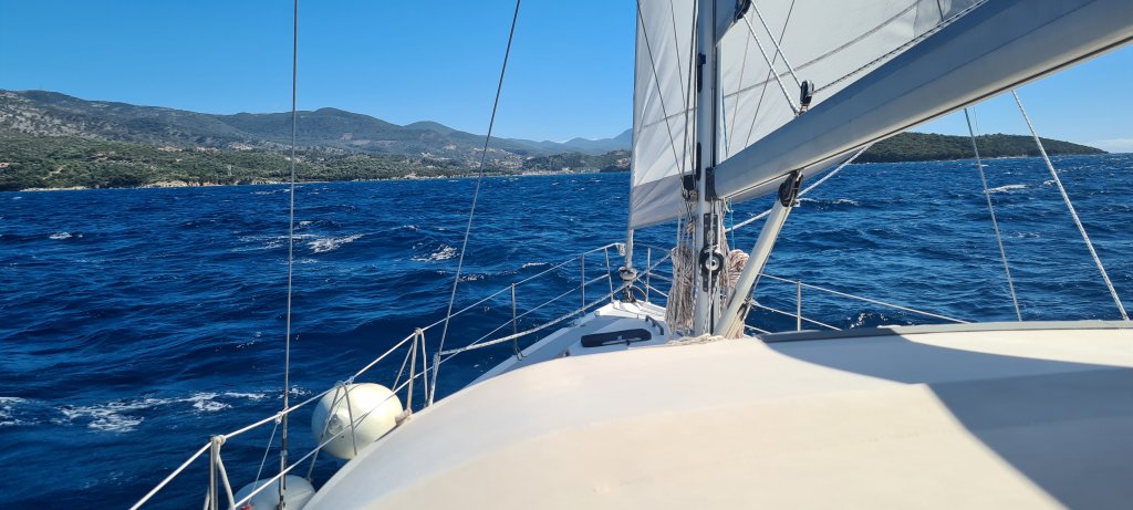 Bra vind för att gå sydost mot fastlandet och sikta på Mourtos Sivota.