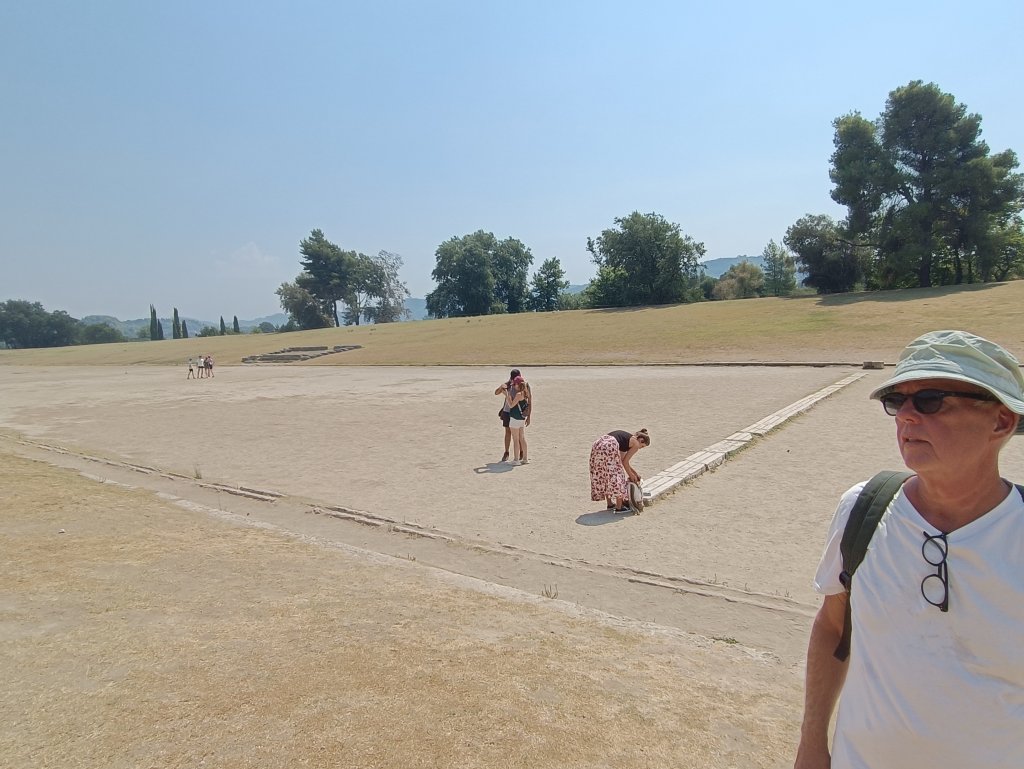 Naturligtvis blev det besök i Olympia där de Olympiska spelen startade på 700-talet BC och där fria grekiska män fick tävla i bla annat löpning, brottning och diskus. Priset till den vinnande var en olivkvist! Var fjärde år under ca 1000 år, fram till år 393 efter vår tiderräknings början tävlades det i Olympia!