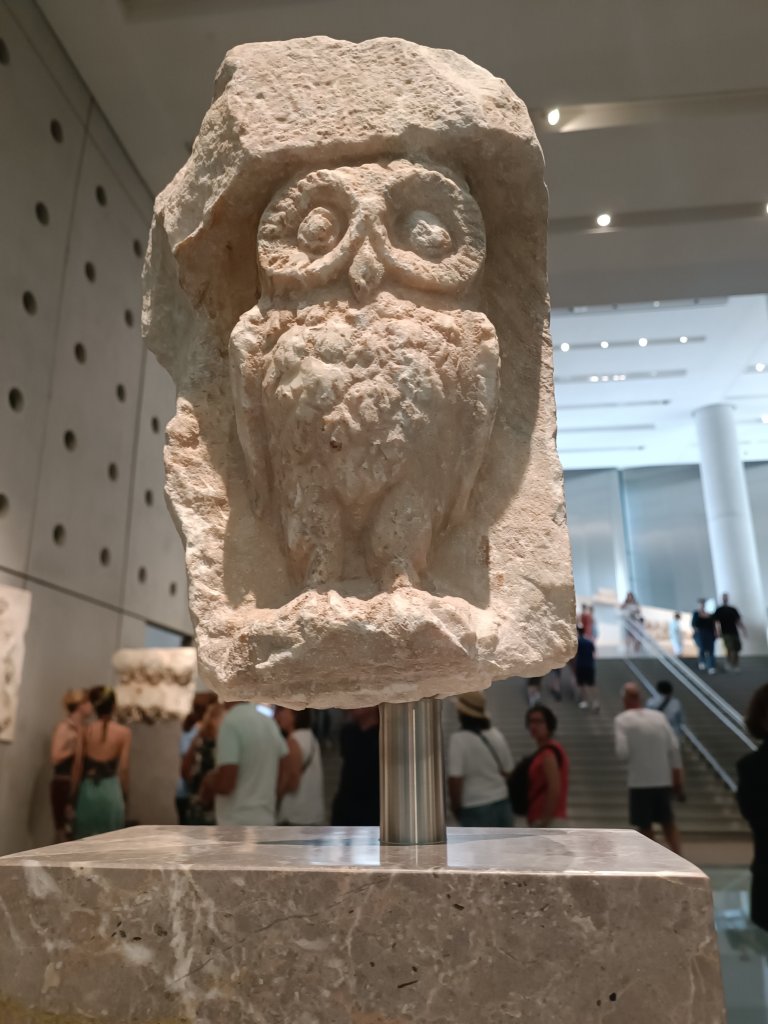 Atena, gudinnan som var Atens beskyddare, hade många ansikten. Här är hon utrustad med sköld när hon märkbart kraftfullt hälsar på en man.Utsmyckningar, så vackraKlok som en uggla… grekerna satte visdom högt