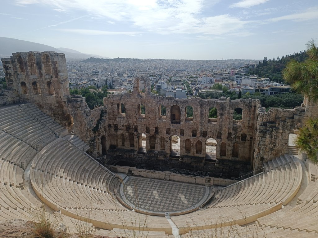 Restaurering pågår, skulle det kunna stå mest överalltDionysos teater där verken av Euripides, Aischylos m fl spelades, pjäser som fortfarande sätts upp runt om i världen. Teatern ser inte så stor ut men var jättelik på sin tid.Herodes Atticus Odeion, scenen har renoverats och används nu regelbundet sedan 1950-taletWhat a lovely couple! sa fotografen. Tja…:-) Glada blev vi i alla fall av vårt besök på AcropolisGreklands sötaste polisbil, den rymmer faktiskt två fullvuxna poliser