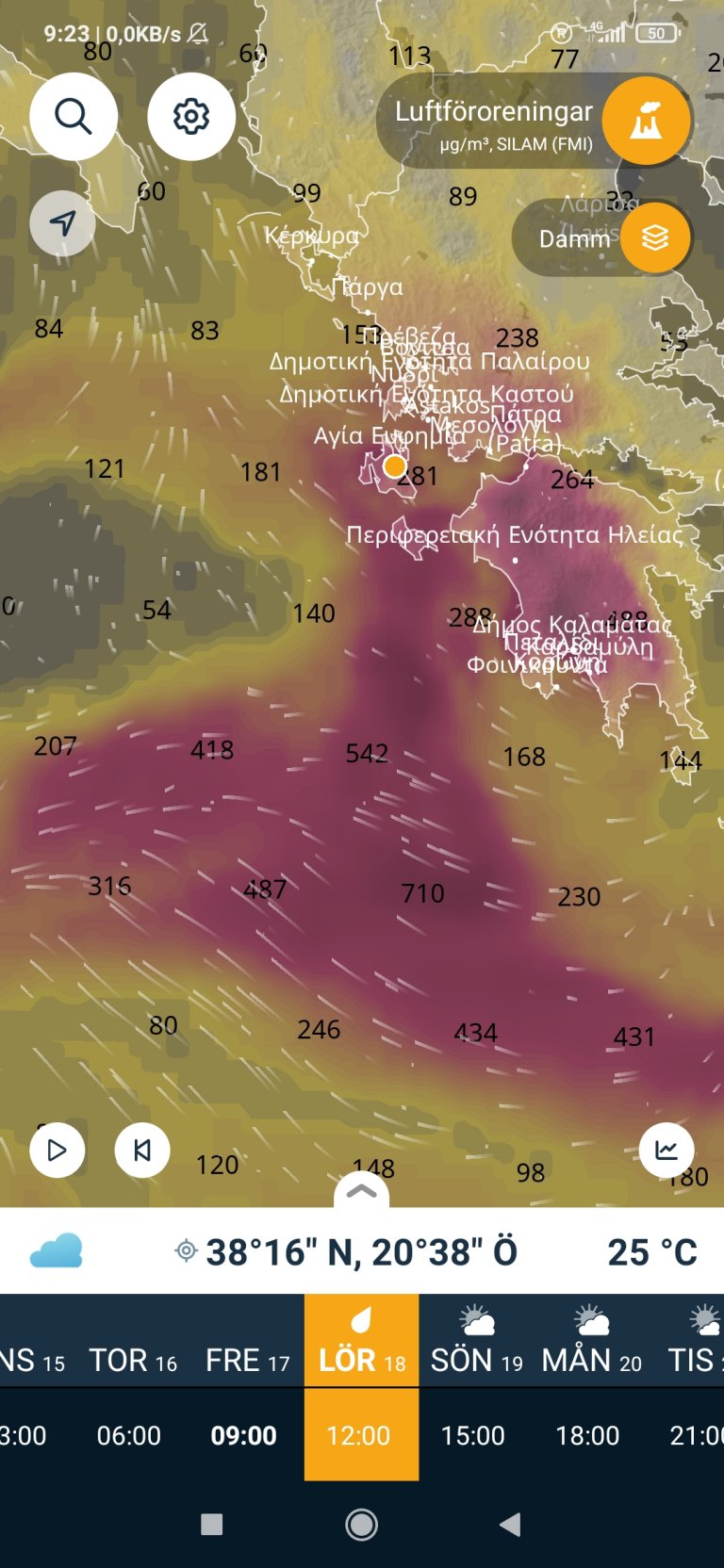 Vi ligger nu på Trizonia, en liten ö i Korintbukten. Det blåser friskt kan man säga, vindmätaren visade 18,6 m/s innan vi var framme i förrgår. Vanligtvis ökar vinden mer och mer under eftermiddagen vilket var fallet i tisdags. Vi ligger kvar någon dag ytterligare innan vi fortsätter.
