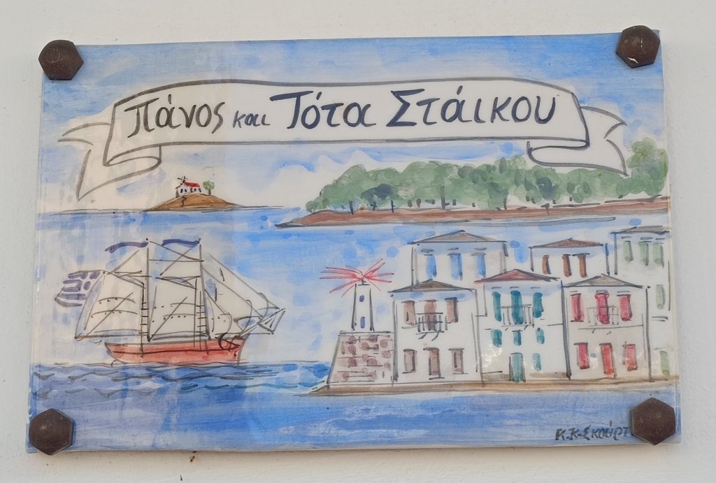 Vi ligger fortfarande i Galaxidi, det lilla samhället med den stolta båtbyggartraditionen. Detta uppmärksammas fortfarande bl a med plaketter på husfasaderna, oftast intill porten på huset.