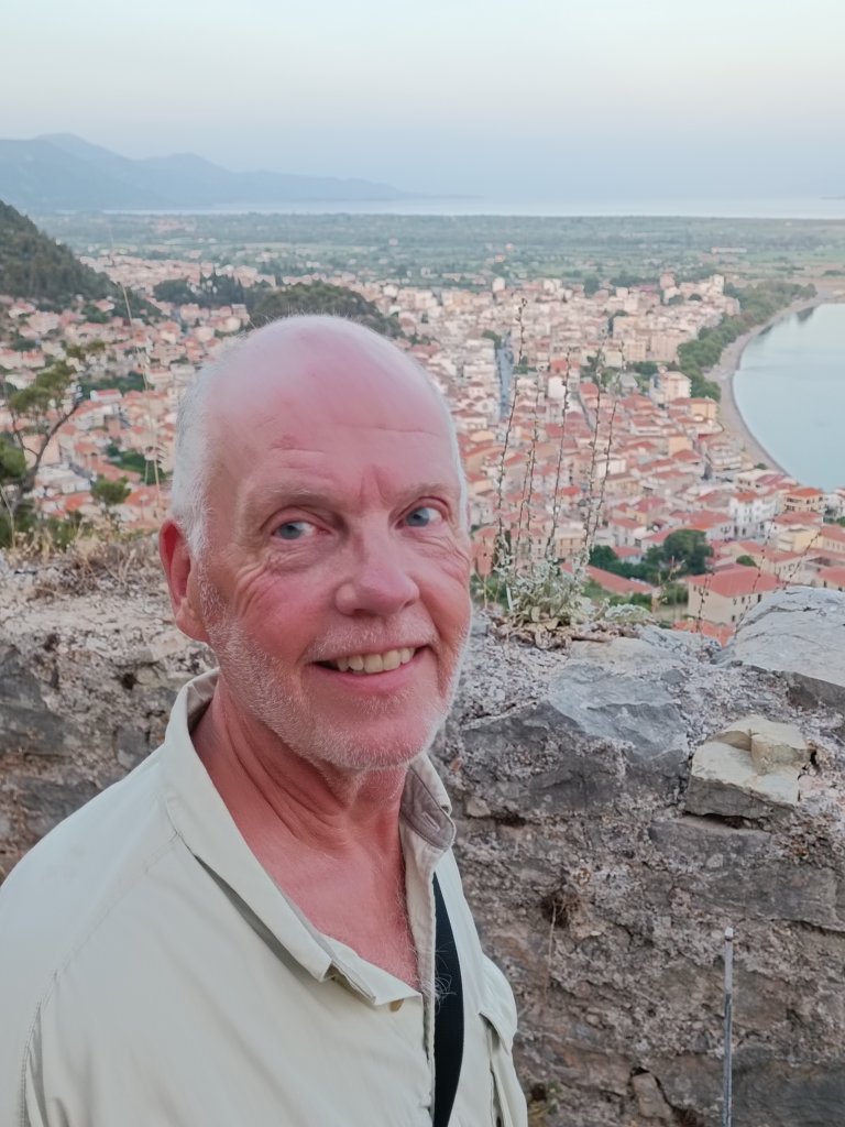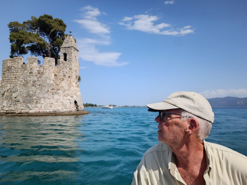 Nafpaktos västra delar i kvällssol med Riobron i bakgrundenNafpaktos sett mot öster från fortetSom tyvärr var stängt när vi kom dit på kvällenSå nöjd kan man bli efter att ha gått ända upp