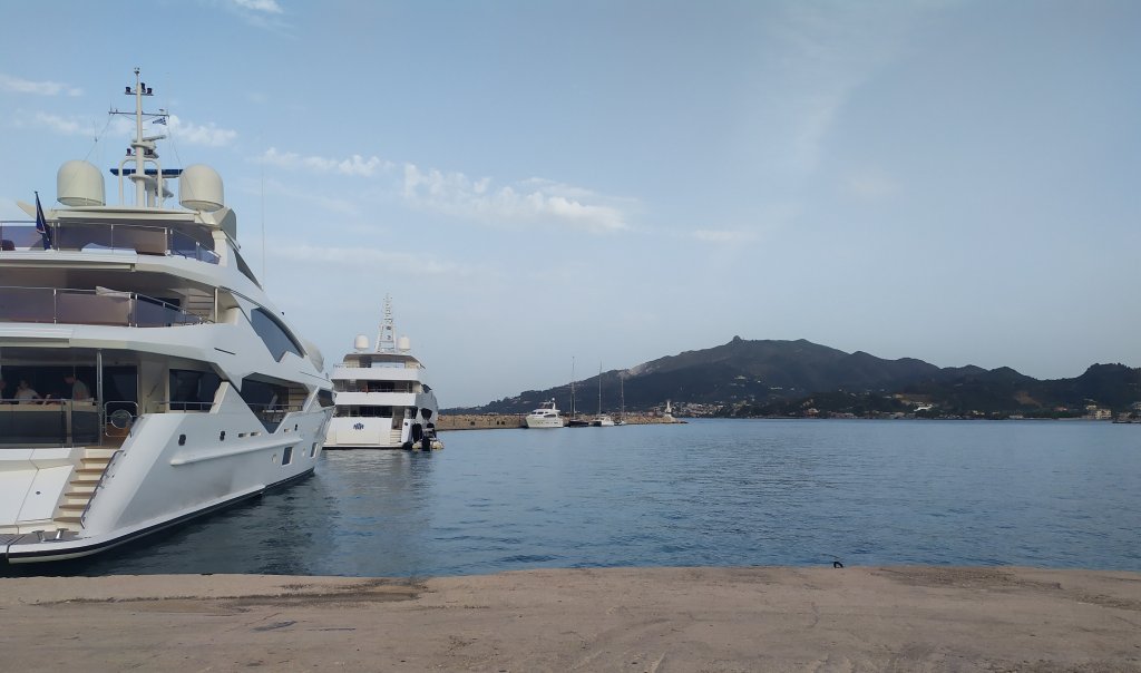 Som sagt, längst ut skymtar Juno, syns någorlunda för den som zoomar in. Närmast i bild super-yachterna NMN och Fandango.