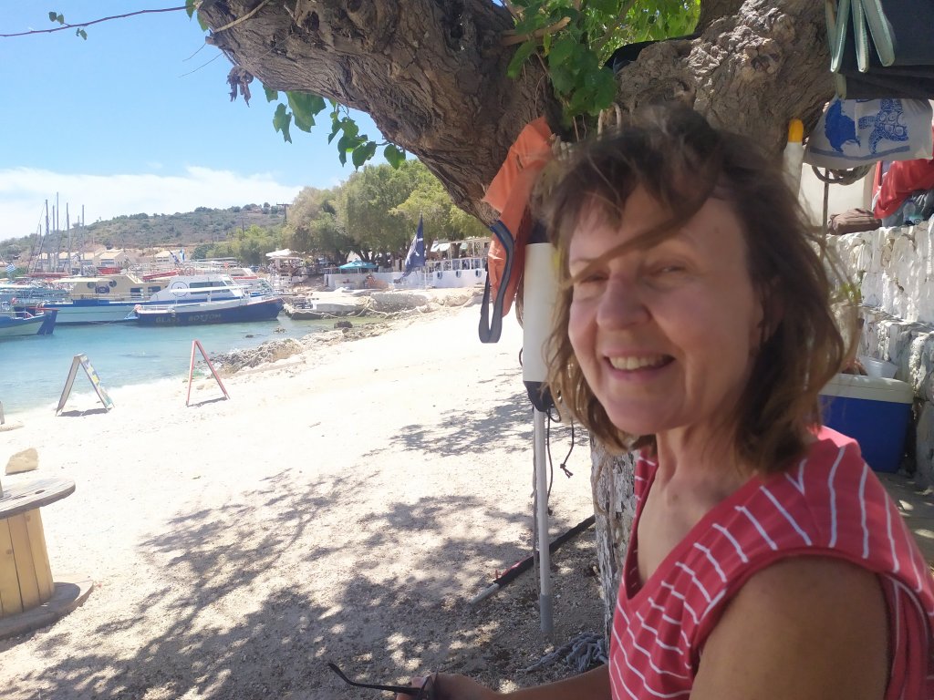 När vi låg i Galaxidi i Korintbukten såg vi i prognosen att det skulle bli mycket varmt där och bestämde oss för att segla ut till öarna i joniska havet. Vi har sedan läst att delar av Grekland haft rekordvärme och att Akropolis har haft stängt den varmaste tiden på dagen. Här på Zakynthos har temperaturen legat på 27-31° och 20-22° på nätterna, sköna temperaturer. Det har blåst mycket, men lite lugnare idag.