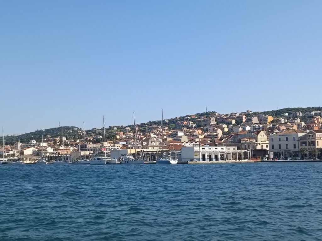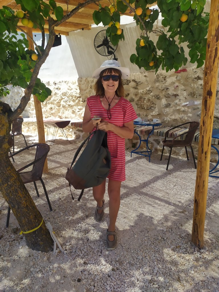 Vi släppte ankaret utanför ett bojat område längs badstranden, tog sedan jollen in till hamnen för att proviantera. Jollen är numera ett osäkert kort eftersom jollemotorn vägrar starta ungefär varannan gång. Om den startar är det på första eller andra försöket, går det inte då är det kört och vi får ro.