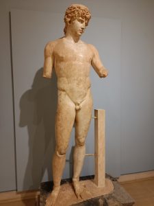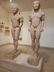Två kuroi i marmor, från Argos, ca 580 BC