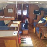 Salongen och redarhytten sett från nedgångstrappan.